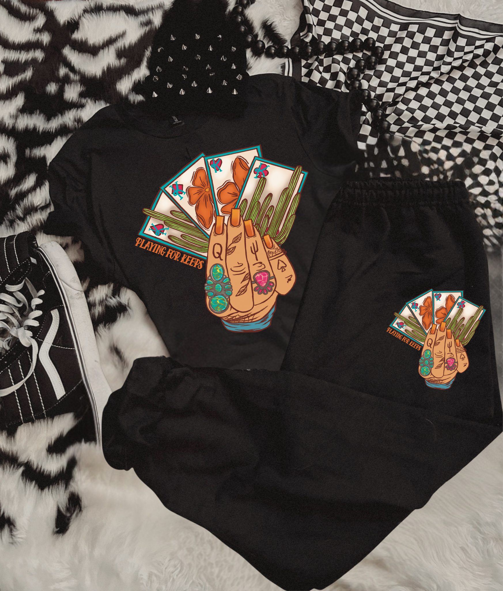 Your choice of joggers with a Gildan softstyle tee or with a crewneck sweatshirt